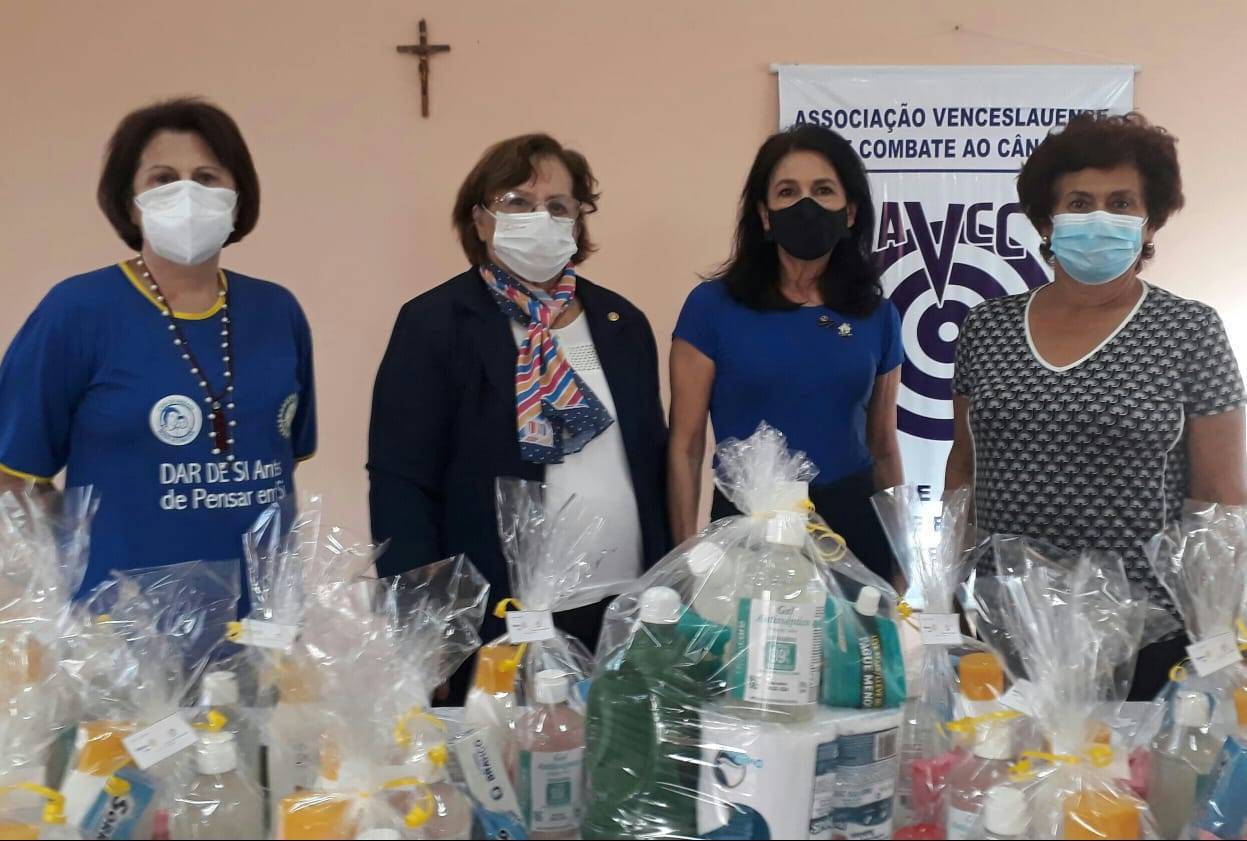 CASA DA AMIZADE E ROTARY CLUB - ENTREGAM KITS DE HIGIENE A ASSOCIAÇÃO VENCESLAUENSE CONTRA CANCER - A.V.C.C.