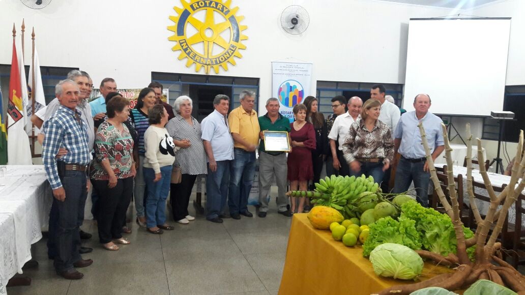 Segundo o presidente do Rotary Venceslauense, Álvaro Carlos da Silva, um dos objetivos do clube é valorizar toda ocupação útil, o trabalho e a dignidade do ser humano e que esses homenageados são exemplos para todos e ótimos representantes da classe rural. Coube ao Rotariano Jóca a fazer a saudação pelo dia da Agricultura Familiar dizendo que “O homem do campo hoje vive com muita dificuldade, mesmo com a tecnologia. O governo não tem subsídios agrícolas e há o problema do escoamento da produção. Eles produzem, mas muitas vezes não conseguem vender a um preço rentável. Dependem também das condições do tempo, do sol, da chuva, da seca. Mas são eles que colocam o alimento em nossa mesa. É um trabalho de muita dedicação”. Já o Produtor e Presidente da Associação Célio Godoy, agradeceu a homenagem. “É um momento importante para nossa Associação, emocionado destacou a luta do produtor rural em prol da população, em sua função de levar o alimento às nossas mesas. Muito Obrigado ao Rotary pelo reconhecimento do nosso trabalho, isso nos dão incentivo. A agricultura familiar é importante demais. O Rotary reconhece e incentiva nosso trabalho. Isso é importante, principalmente no momento que estamos vivendo no país. 70% dos alimentos vêm da agricultura familiar, mas existem muitas dificuldades e o Governo tem que investir mais”, concluiu o Presidente da Associação Água da Colônia. A seguir o Presidente do Rotary convidou todos os produtores presente e os Rotarianos da comissão de Agricultura e meio Ambiente para que fossem até a frente para fazer a entrega de Certificado de Mérito Rotário. Lembrando que tinha como decoração uma ampla mesa expondo os produtos agrícolas produzidos pela Associação. E o final foi servido um delicioso jantar aos presentes.