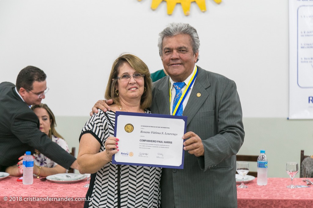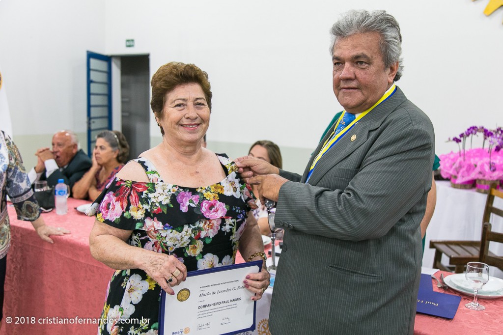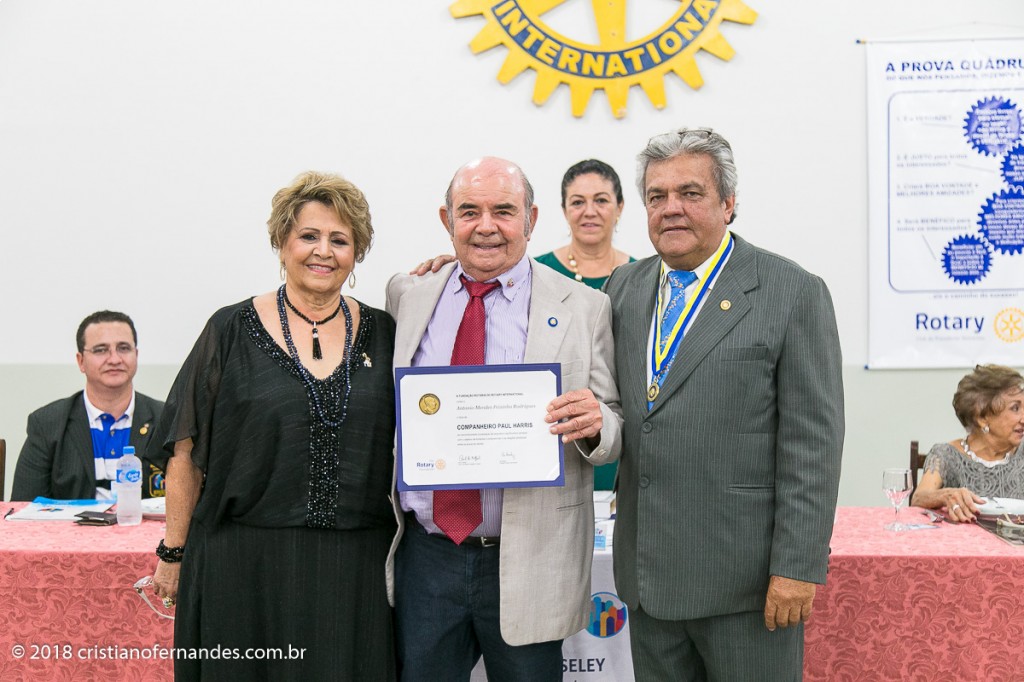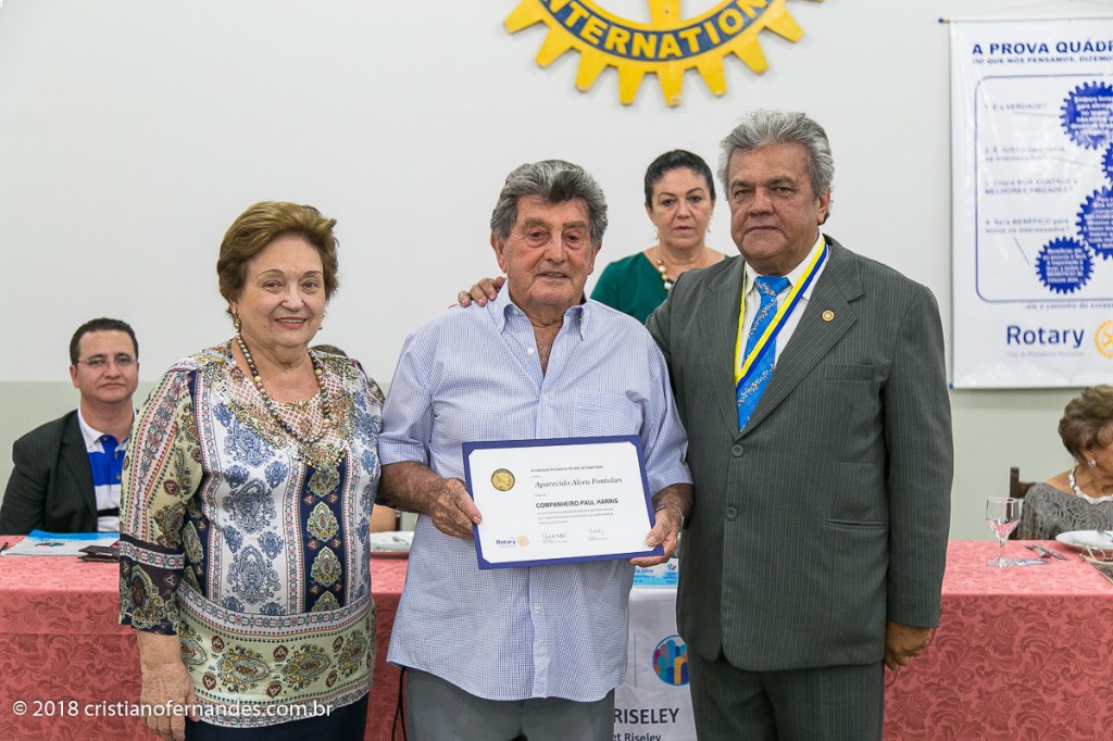 A reunião festiva do mês de Maio do Rotary Club de Presidente Venceslau, realizada no dia 10, foi uma noite de muitas emoções. Na data, o Presidente do Rotary recebeu o título Paul Harris das mãos do Governador Assistente Emerson Biscola, bem como a medalha de mérito rotário pelas ações de combate a poliomielite no ano Rotário 2017/2018. Logo a seguir o Presidente Álvaro Carlos teve a honra de fazer a entrega de mais (4) quatro títulos Paul Harris foram agraciados com o Títulos os rotarianos: Aparecido Alceu Fontolan, Maria de Lourdes Gomes Batata, Rosane Fátima S. Lourenço e finalmente ao Antonio Mendes Peixinho com mais de 30 anos de Rotary recebendo seu ítulo.